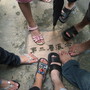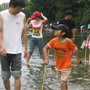想不到停車場旁邊就有條小溪已經一堆人玩起來了,小鬼們當然不落人後也衝下去....